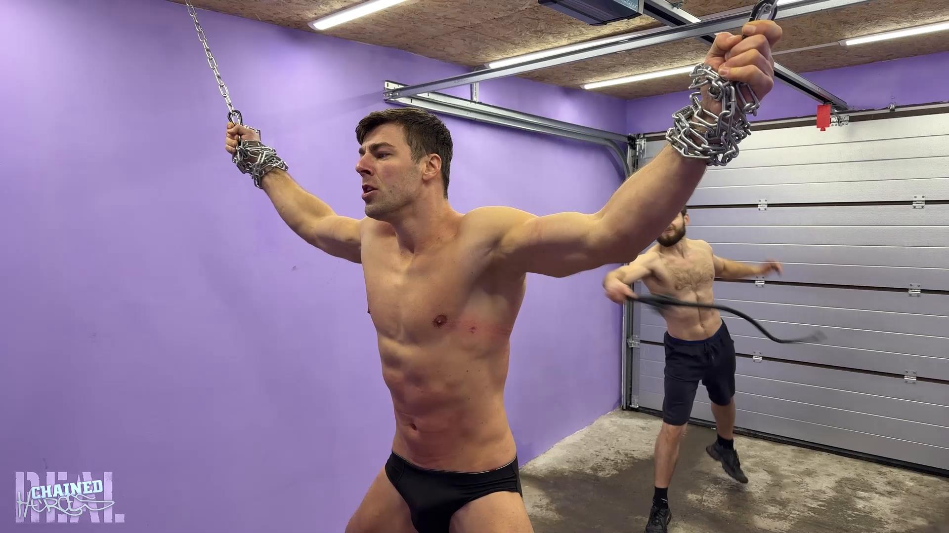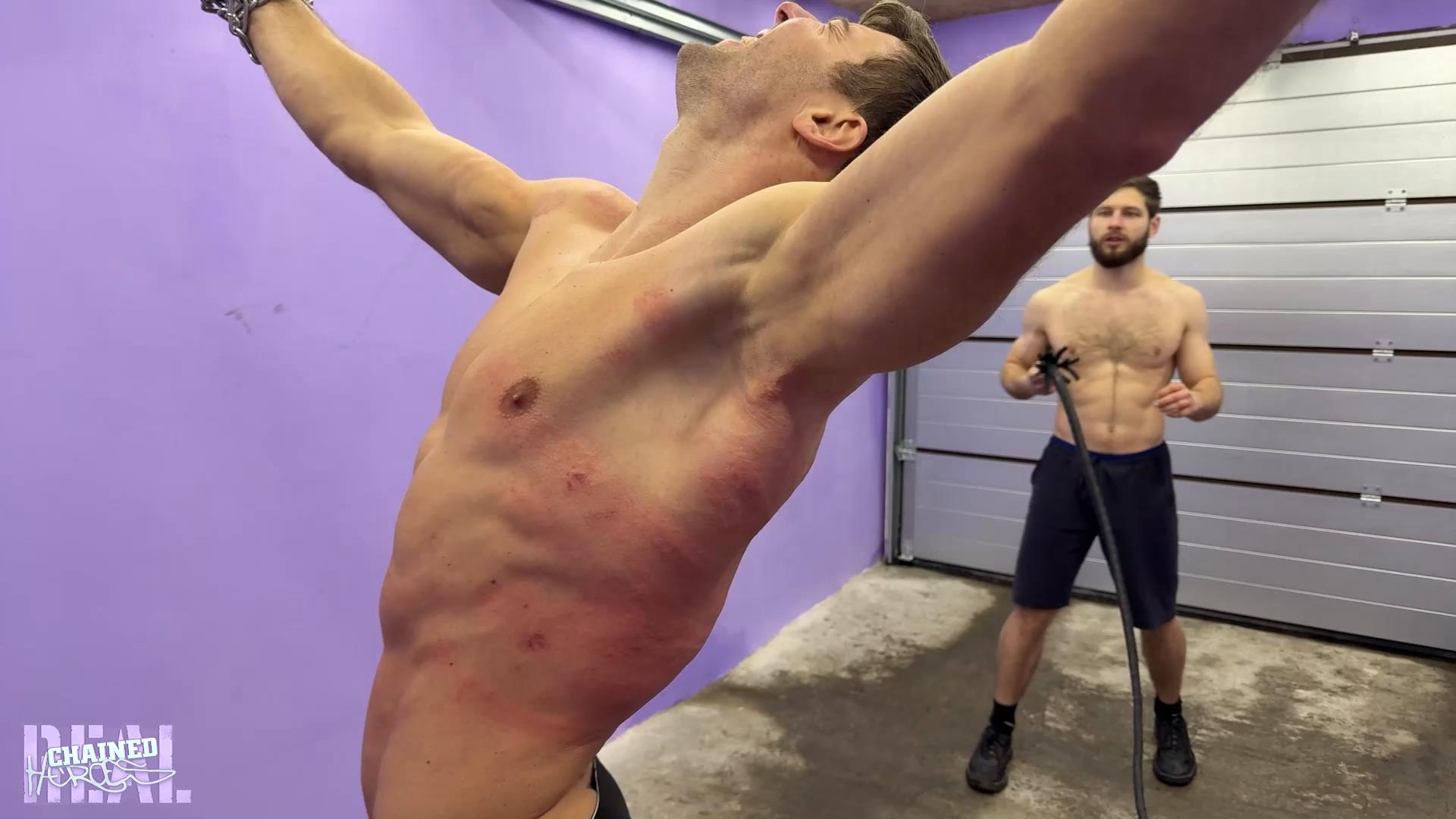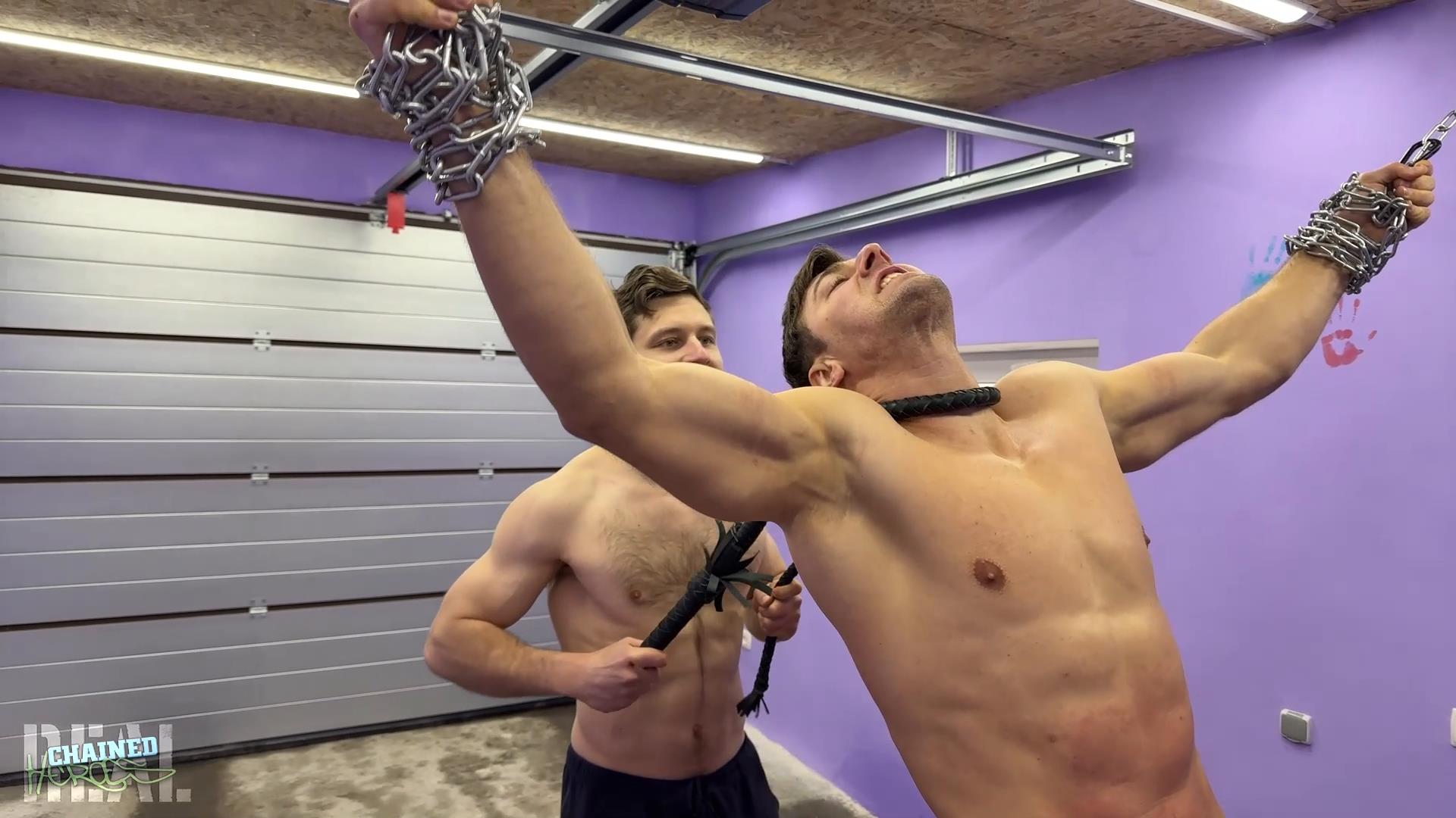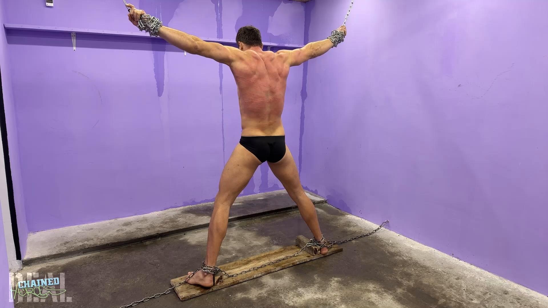 We next discover our ALEX, back in the Purple Punishment Room, chained in a standing spread-eagle. DIMA returns with a nasty-looking bullwhip, his only comment to ALEX being: “I will KILL you!” Then DIMA returns to his “job”: TORTURING ALEX! This time: SEVERE CONTINUOUS WHIPPING. DIMA uses the bullwhip on ALEX’S back for a good 20 minutes of non-stop torture! “Do you like it?” DIMA asks ALEX, again and again… and again. And the answer is always the same: “FUCK YOU!”
