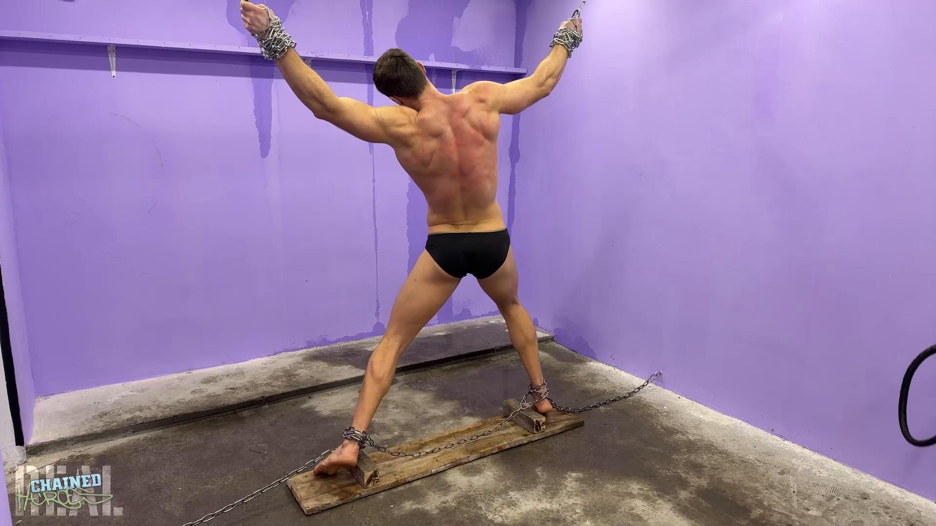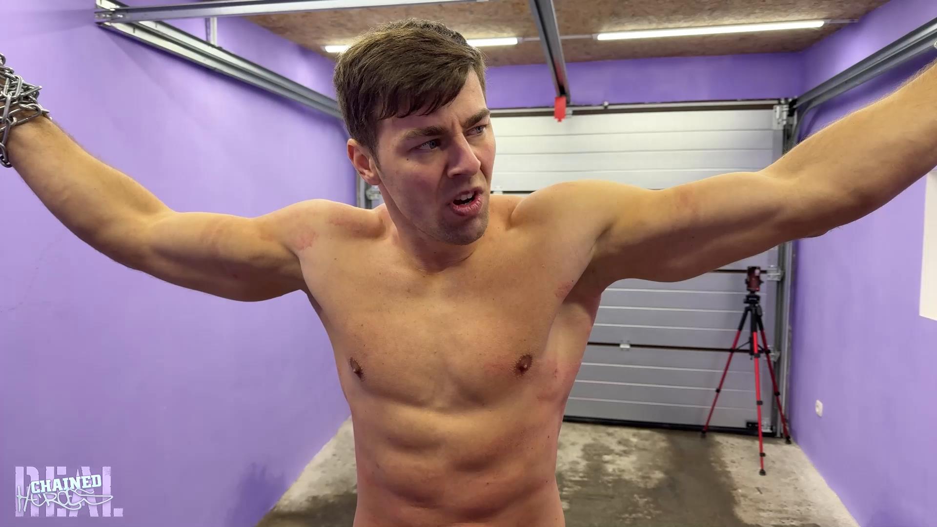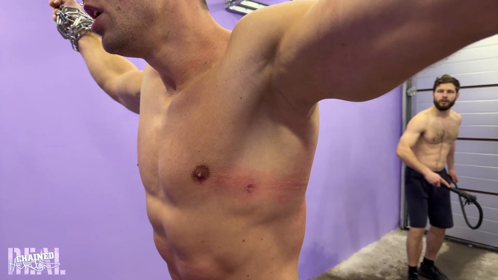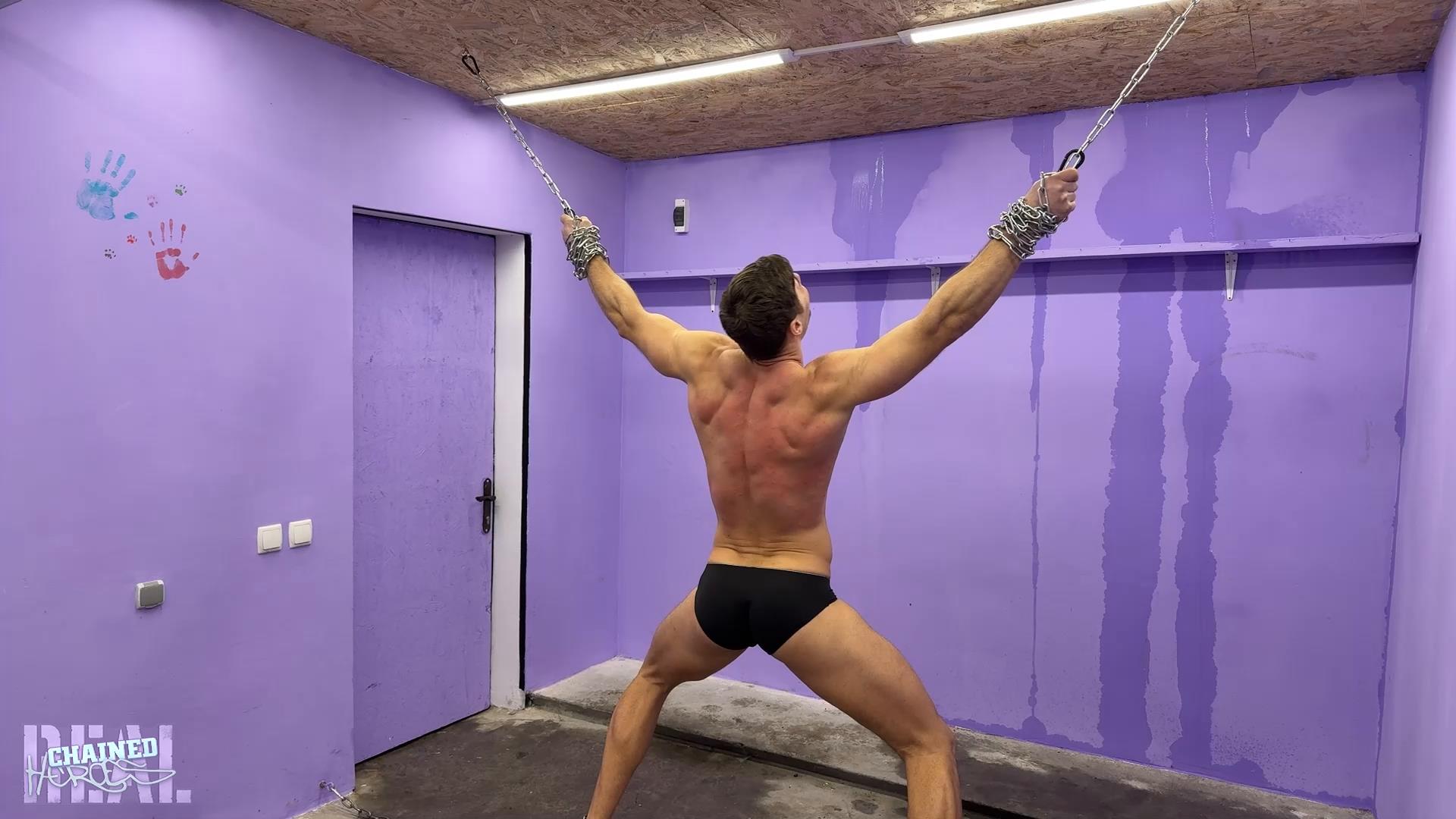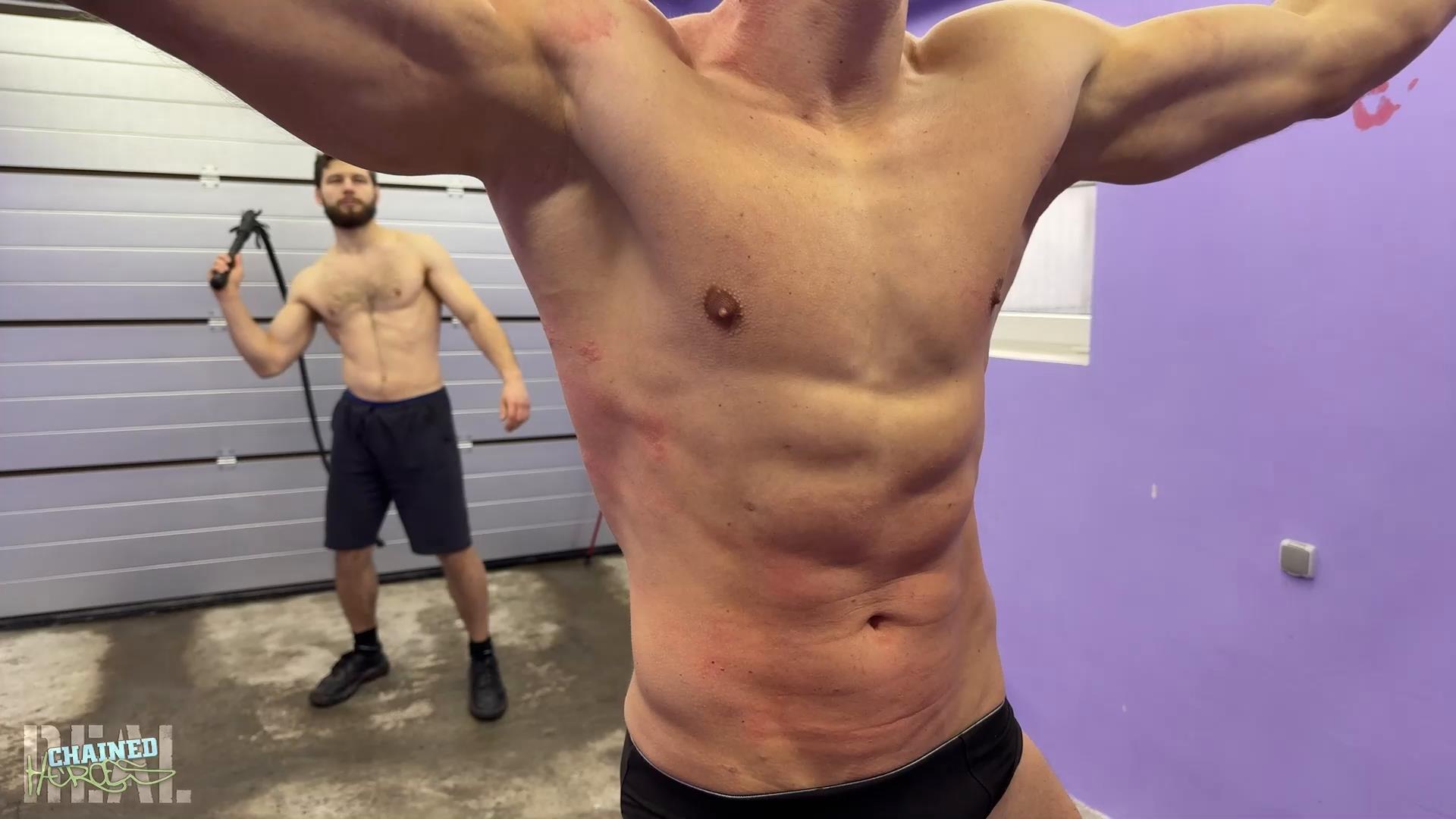 We next discover our ALEX, back in the Purple Punishment Room, chained in a standing spread-eagle. DIMA returns with a nasty-looking bullwhip, his only comment to ALEX being: “I will KILL you!” Then DIMA returns to his “job”: TORTURING ALEX! This time: SEVERE CONTINUOUS WHIPPING. DIMA uses the bullwhip on ALEX’S back for a good 20 minutes of non-stop torture! “Do you like it?” DIMA asks ALEX, again and again… and again. And the answer is always the same: “FUCK YOU!”