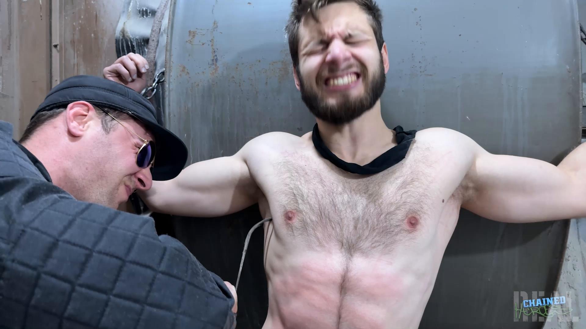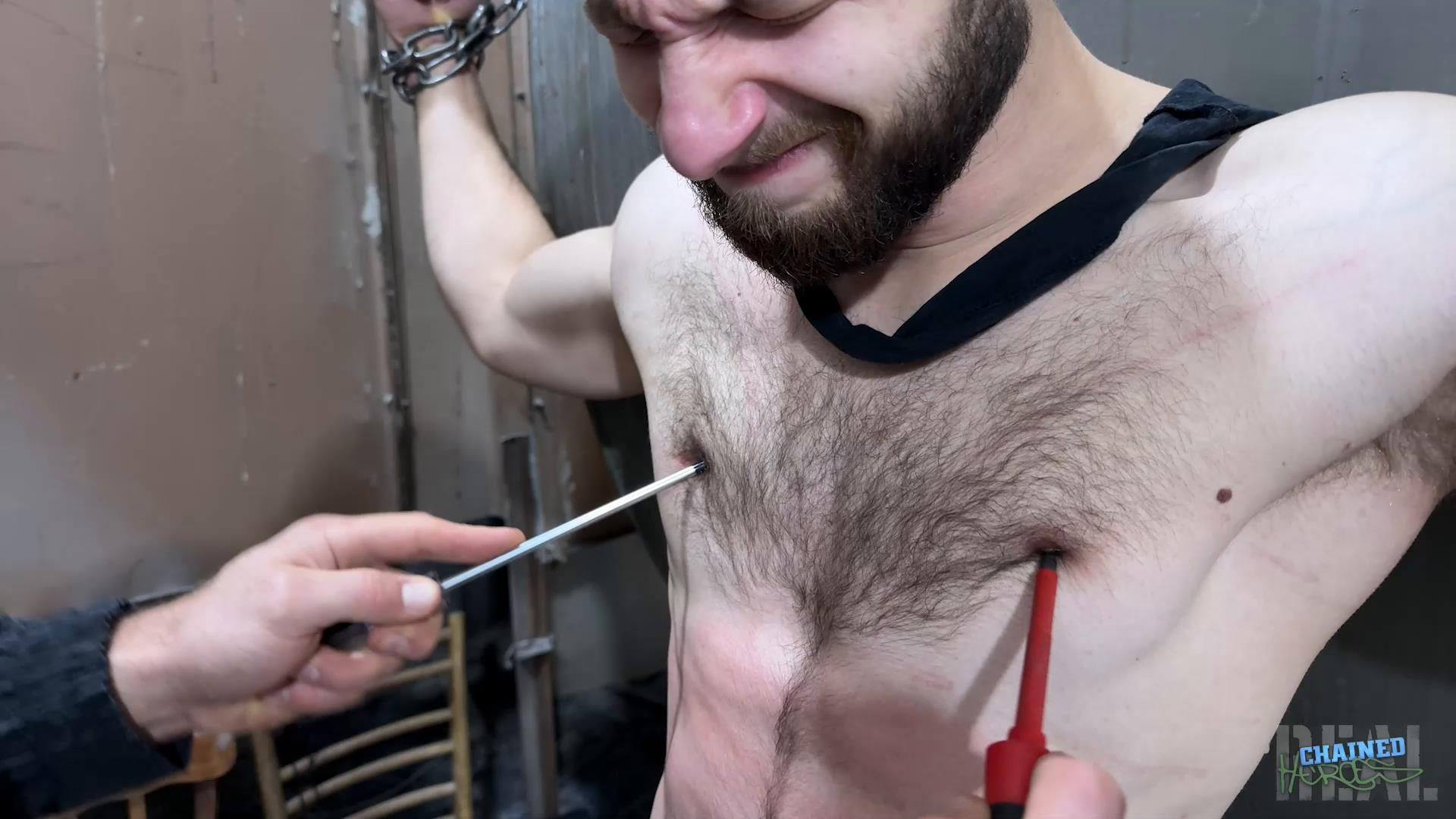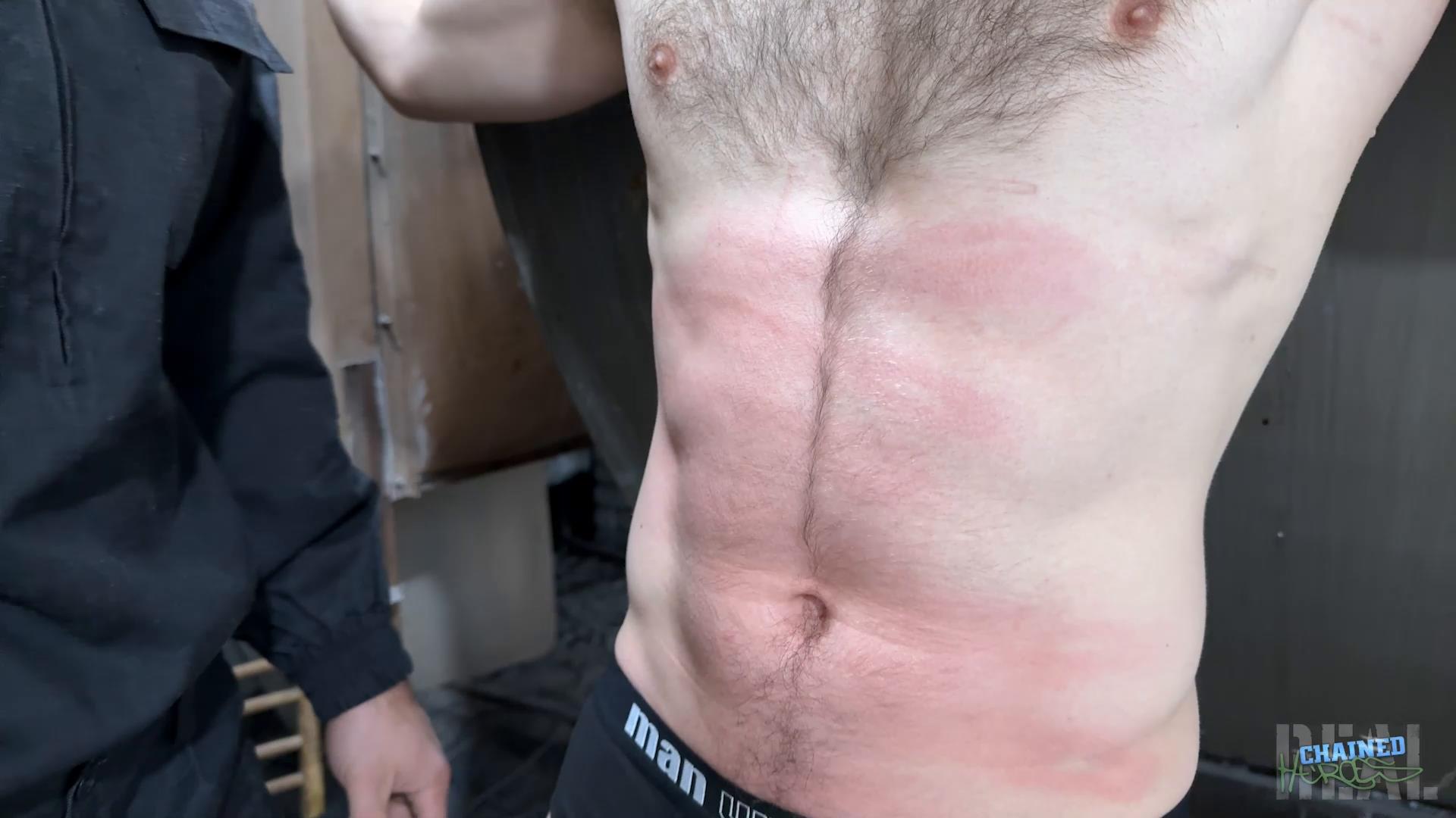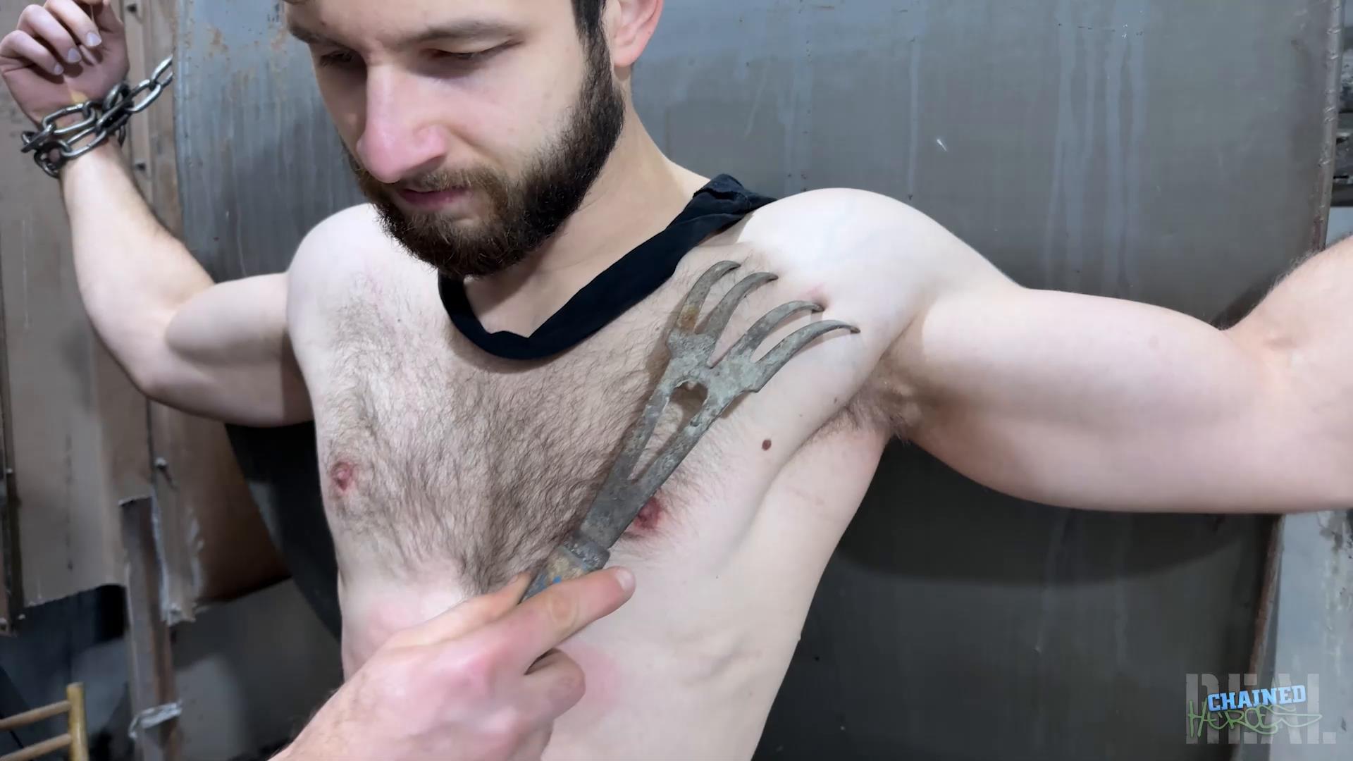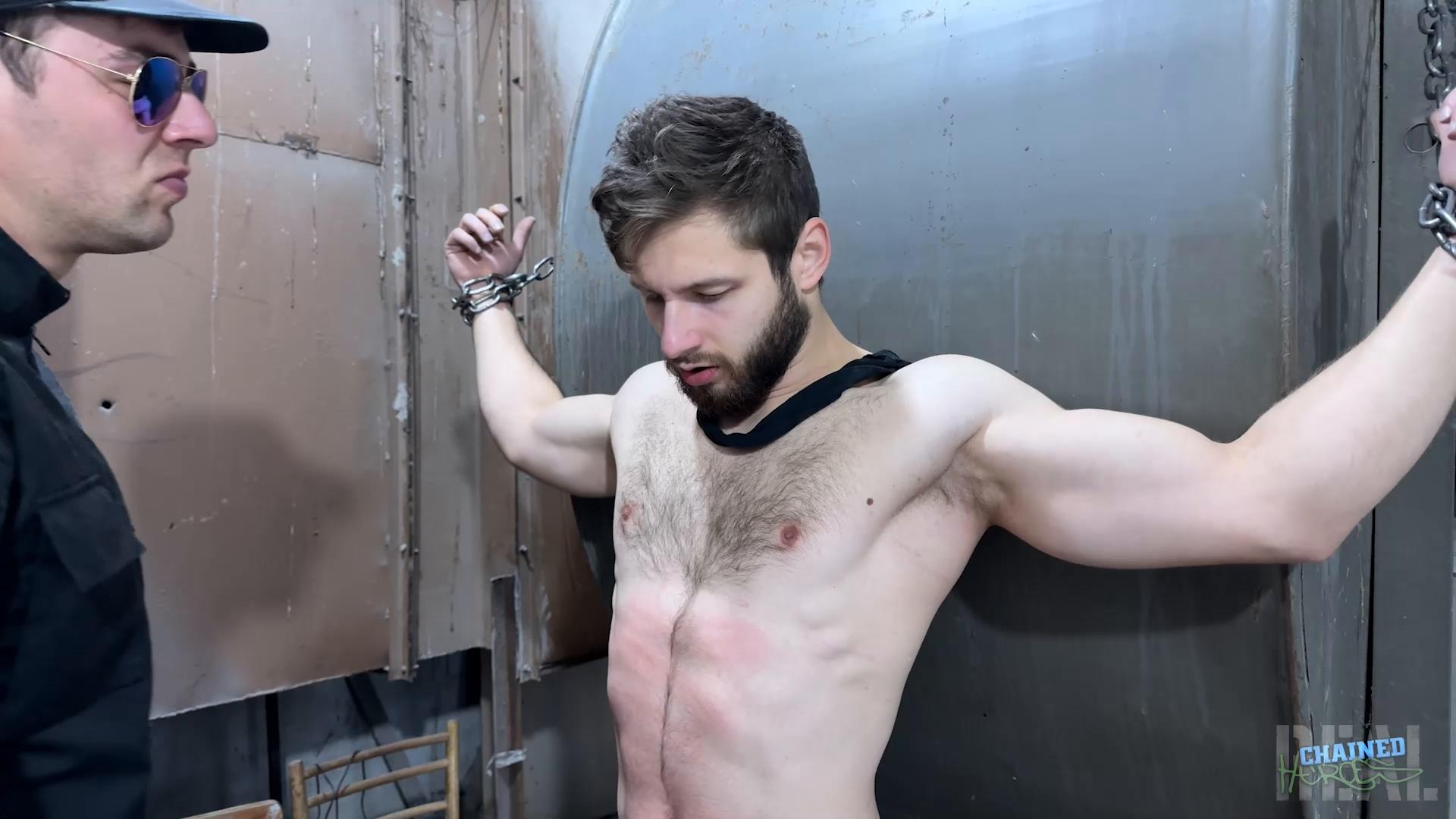 Commando DIMA has been captured by THE ENEMY, and is now put "ON TRIAL” by The Judge while simultaneously being TORTURED by Captain ALEX - PART 1 of 3: “THE TRIAL” BEGINS - DIMA is standing barefoot on bricks, wearing only small, tight, black underwear. He is chained at his wrists & ankles with his arms & legs spread to a large metal drum. DIMA is blindfolded. Next to him, a table with the TORTURE TOOLS he will soon become all-too-familiar with: 2 medium-size Torx screwdrivers, a metal claw & a rubber hose, to be used while The Judge “Confirms or Corrects” DIMA’s first three “Statements”…